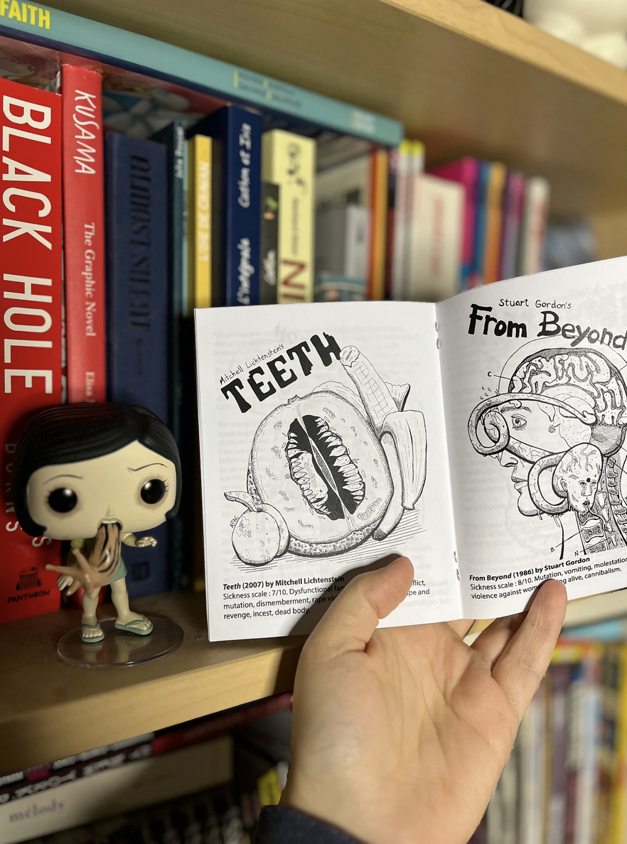 Each page of this zine presents an exclusive and spine-chilling mini-poster, showcasing the featured films in all their grotesque glory. Immerse yourself in the macabre visuals that capture the essence of these cinematic nightmares, evoking a sense of unease and fascination.